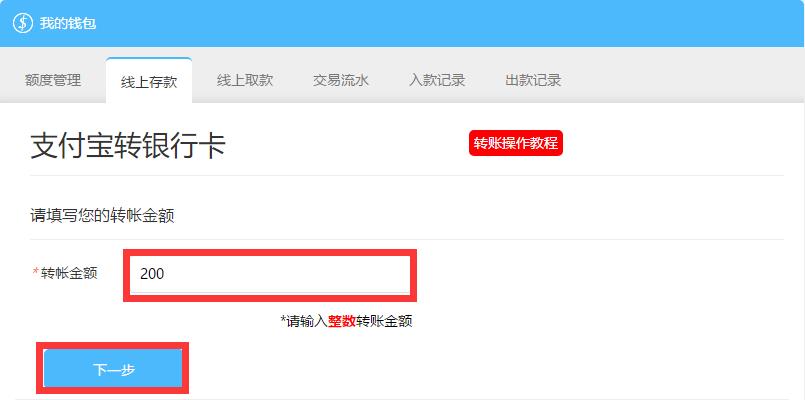 输入您要转账的金额(必须为整数),再点击下一步。
